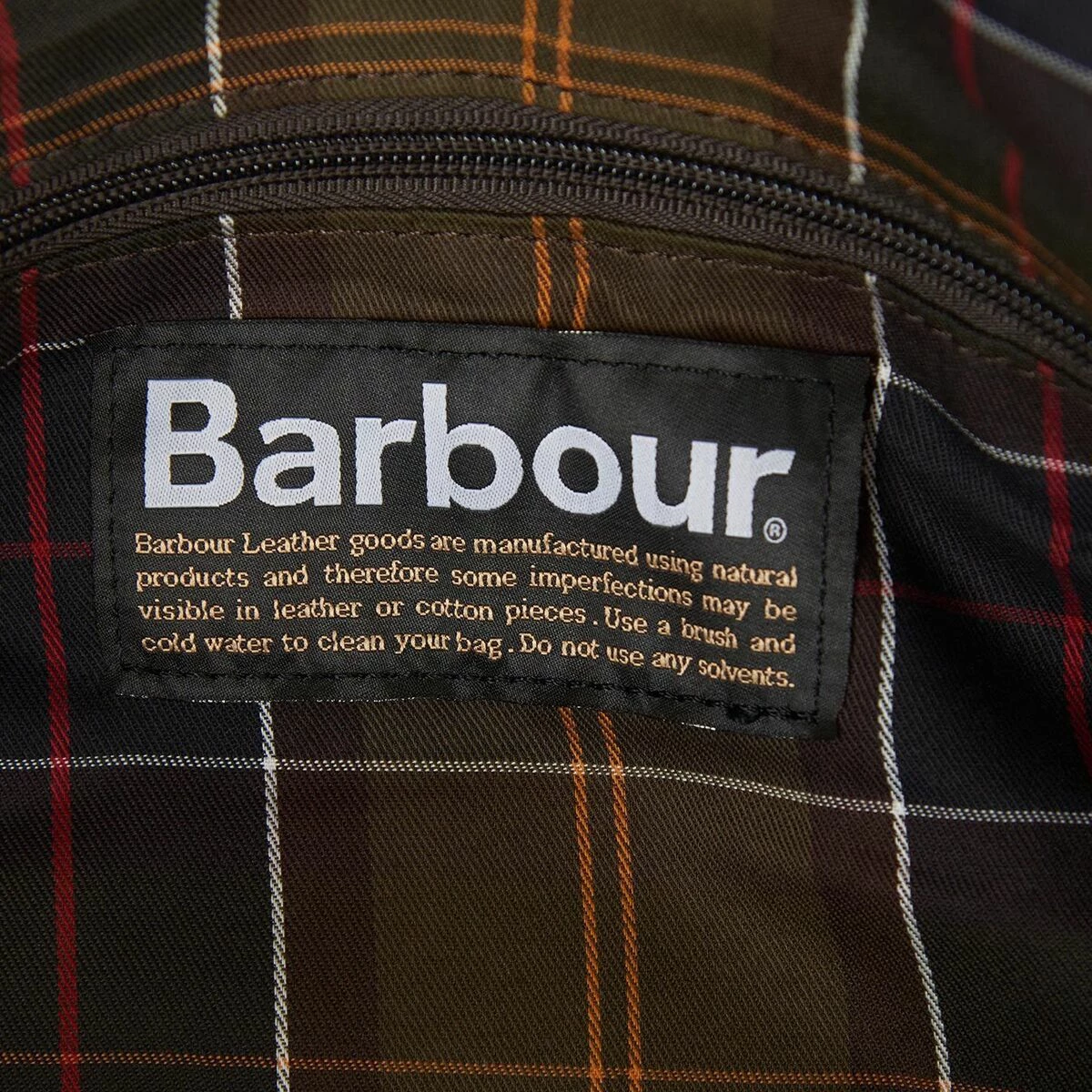 - Material: [face fabric] waxed cotton, leather trims [lining] Barbour tartan